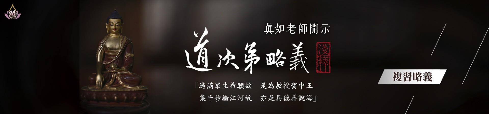 日常老和尚致力弘揚《廣論》,強調般若殊勝,並囑咐真如老師為弟子講解《廣論》止觀。2020 年 10 月,真如老師啟講《廣論止觀初探》,目前已集結前面 31 講發行紙本書。大慈恩月光國際譯經院也加快腳步,翻譯《菩提道次第廣論・奢摩他》、《菩提道次第廣論四家合註白話校註集5・奢摩他》。三部經典同時問世,祈願眾生早日證悟空性,究竟安樂!